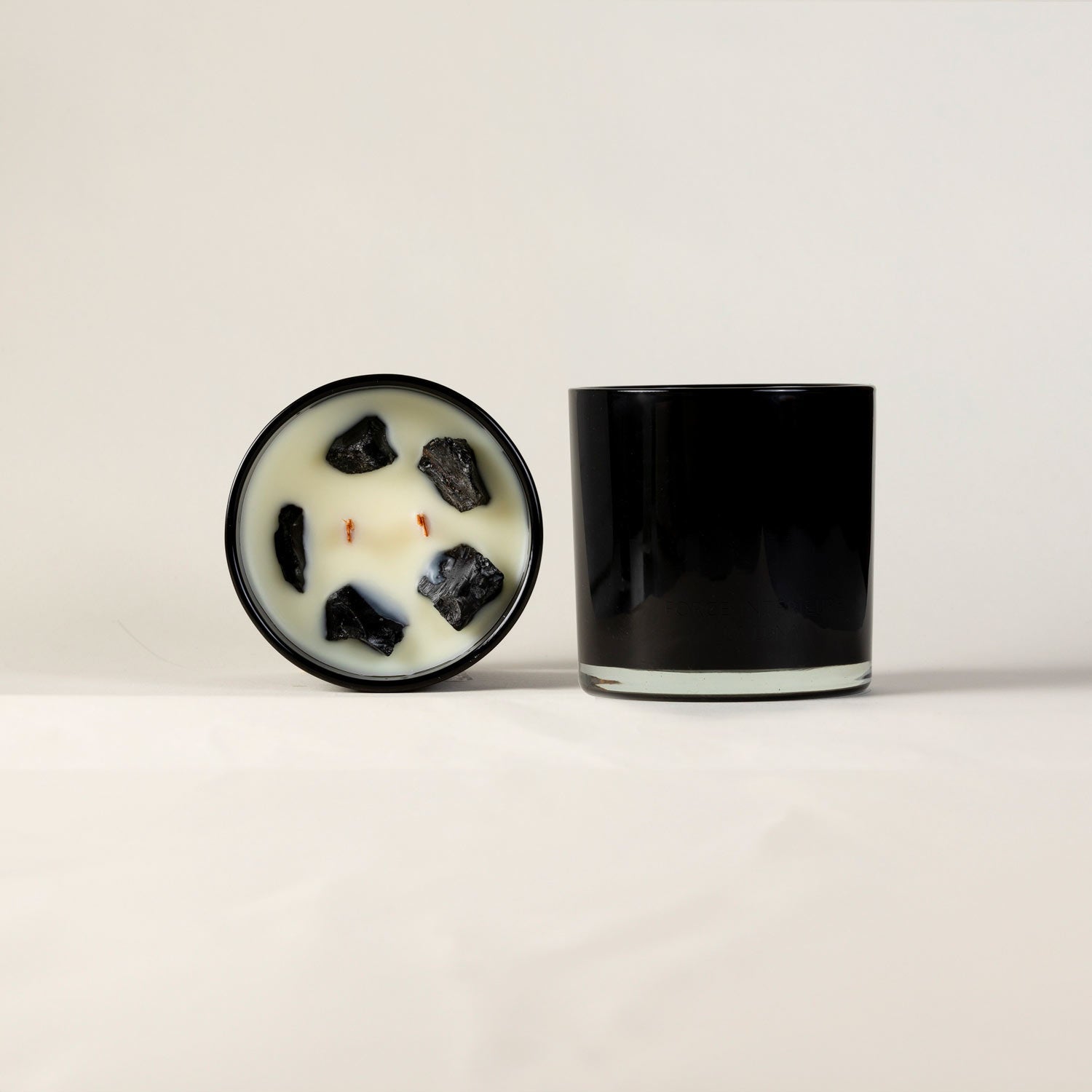 The obsidian crystal candle is associated with self-confidence and self-esteem. Obsidian crystals encourage taking action and overcoming personal blockages.