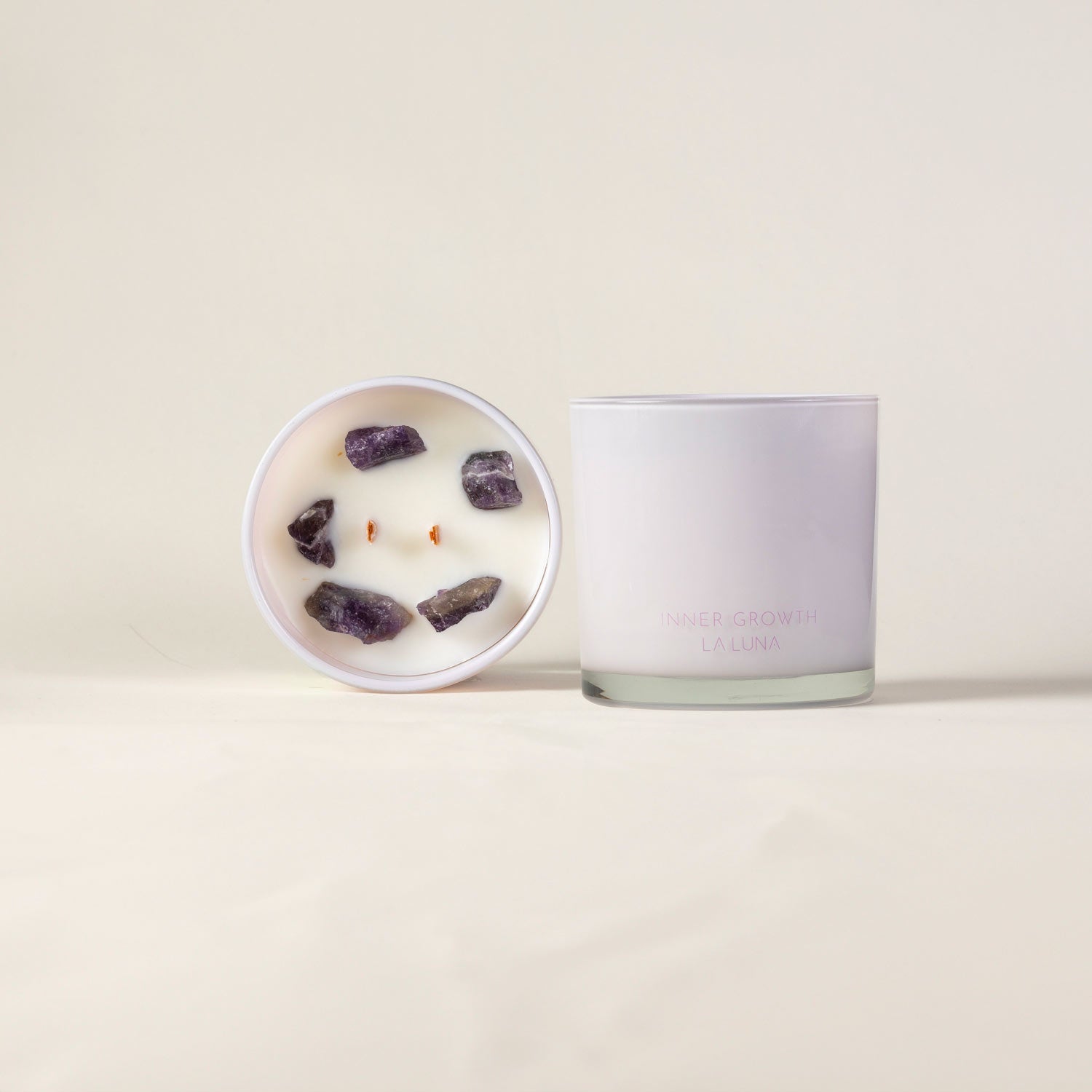 Explore our full collection of candles with crystals and choose the gemstone candle that resonates most with your intentions and lifestyle.